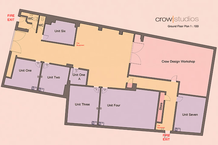 Situated in Derby city centre with 7 studios Crow offers an innovative, professional and stimulating environment for designer makers, artists, and business owners. Crow provides the opportunity to work alongside a small community of creative people. Clean and dirty workspace, 24 hour access, free parking and competitive rates. Owned and run by Dale who also has his own studio/workspace located here.